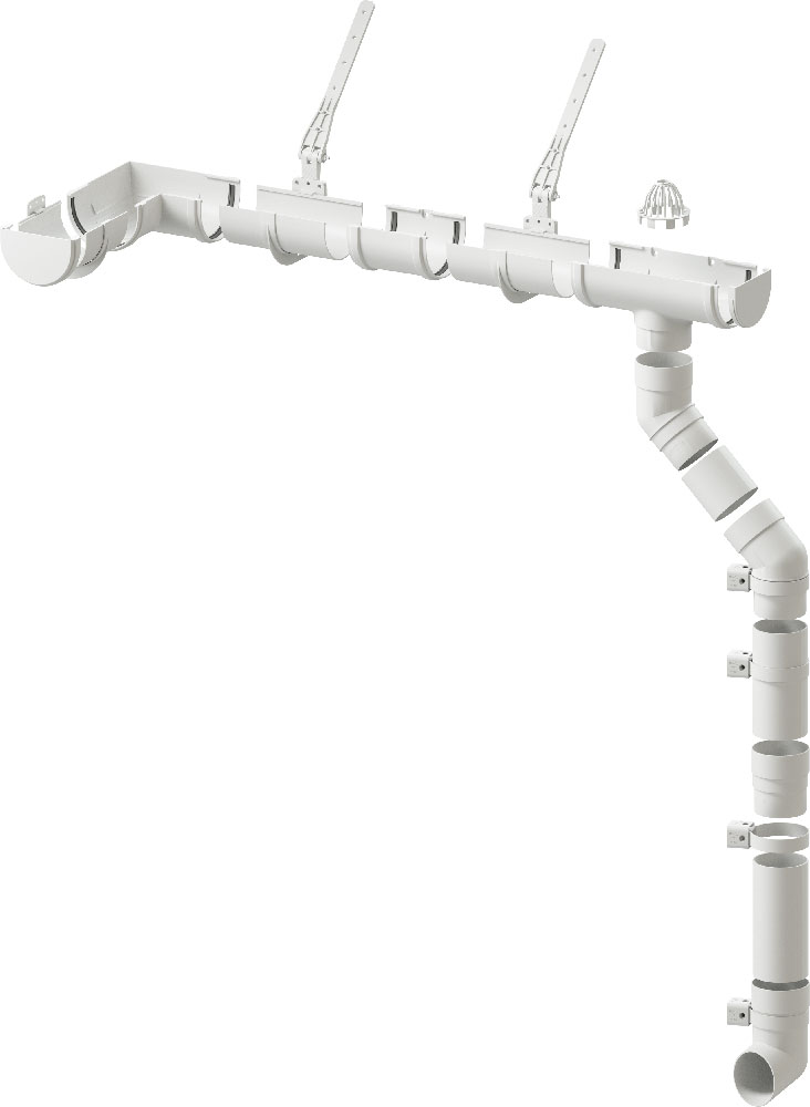 Элементы водостока соединяются на уплотнителях, без клея и герметика. Собрать водосток под силу даже непрофессионалу