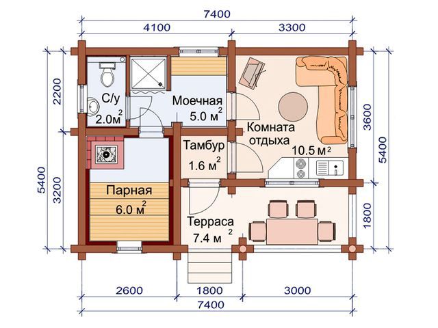 - Баня из бревна 5,4х7,4